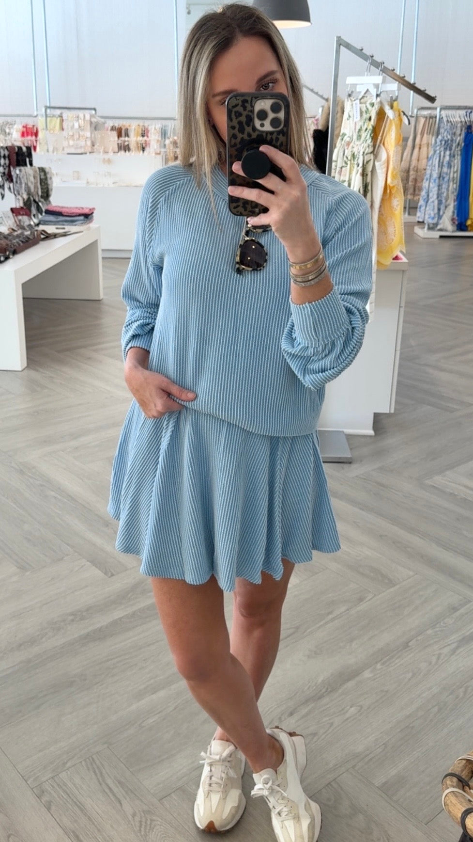 Increase quantity for Blue Corded Lantern Sleeve Top