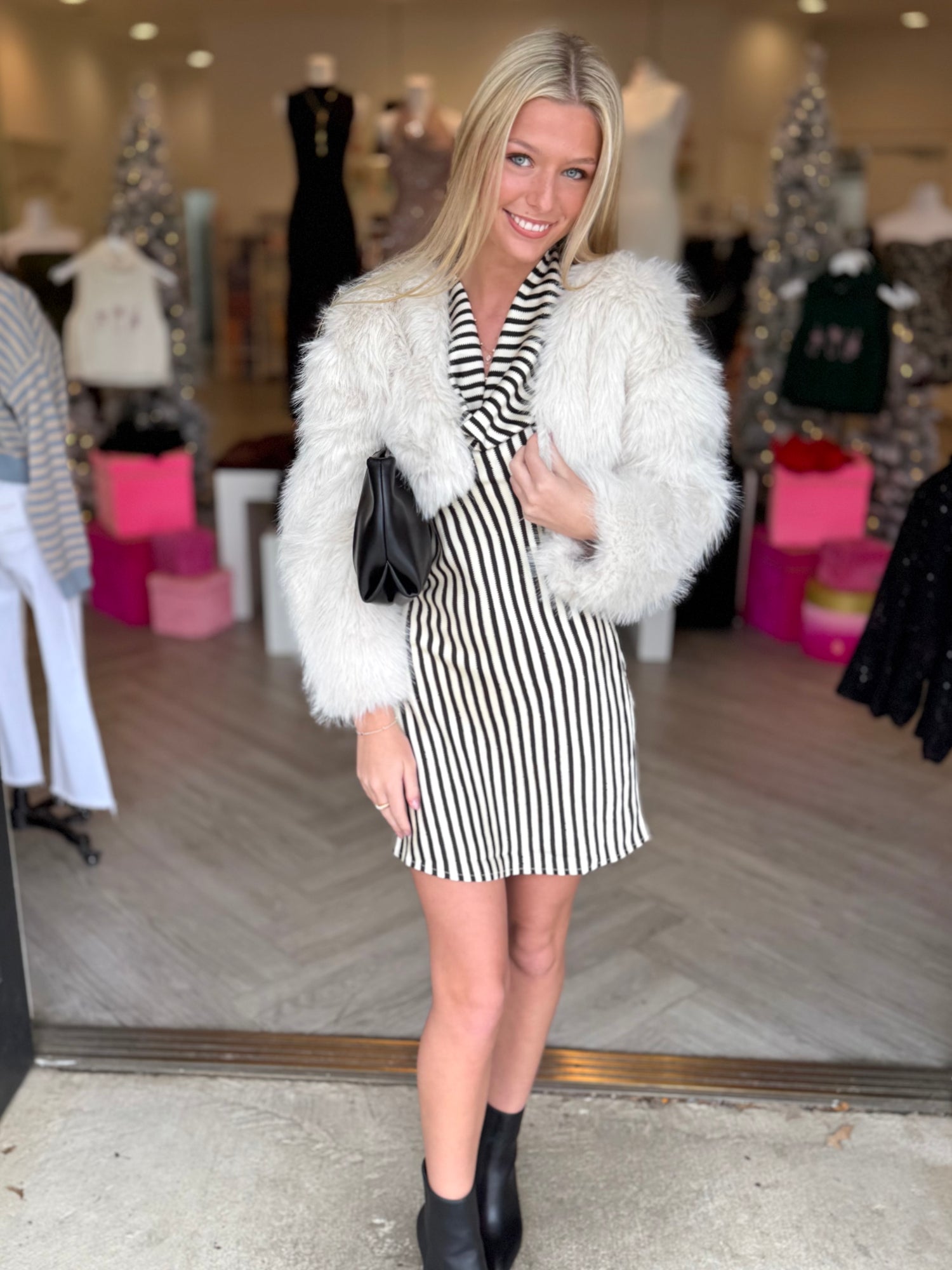 Cream/Black Striped Satin Mini