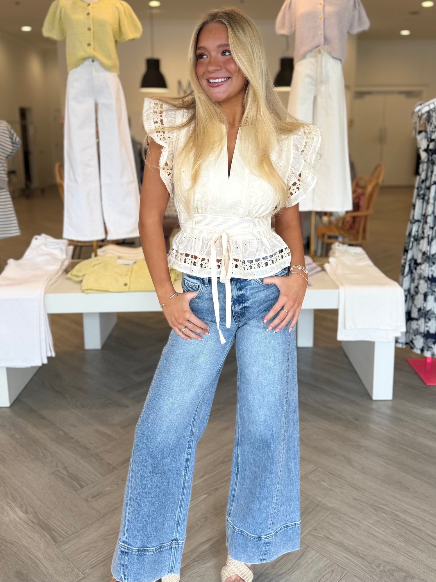 Cream Flutter Sleeve Top