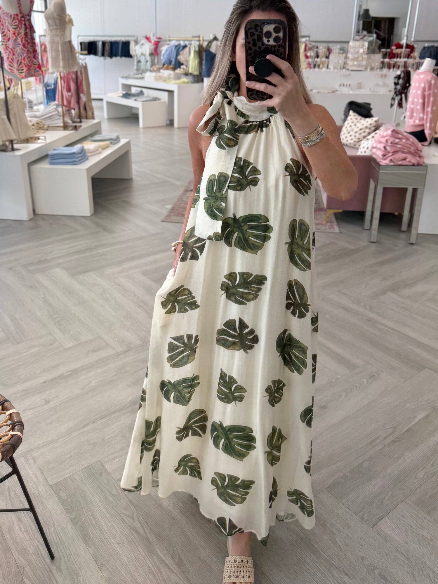 Increase quantity for Cream Leaf High Neck Maxi