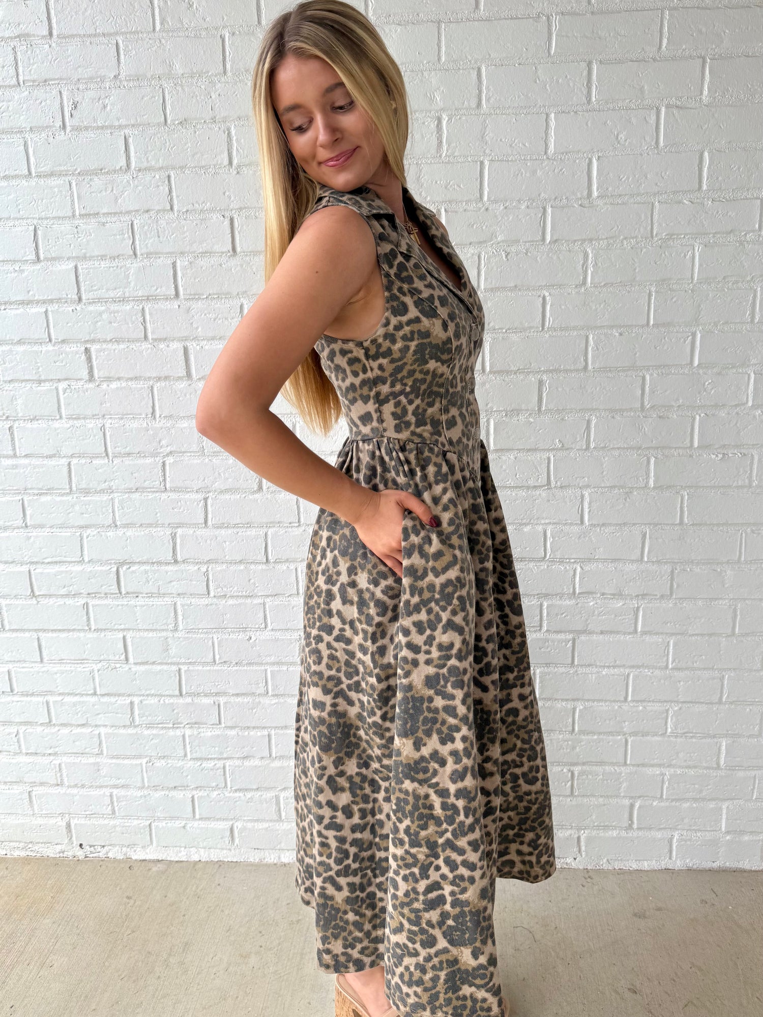 Decrease quantity for Leopard Denim Notched Flare Midi