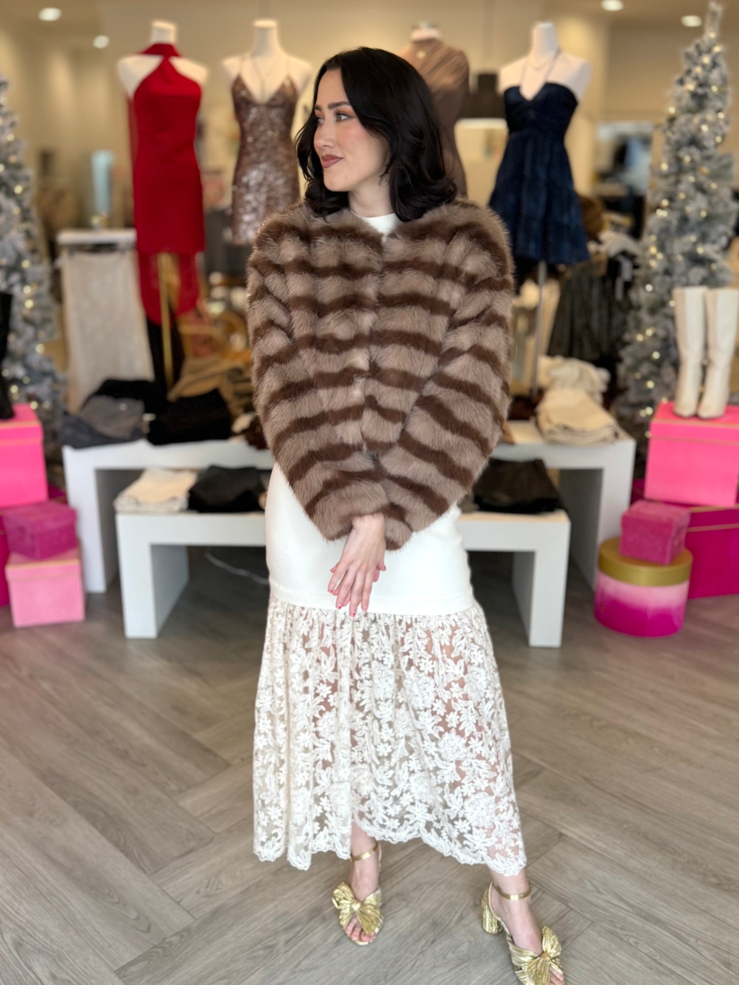 Increase quantity for Mocha Brown Stripe Fur Jacket