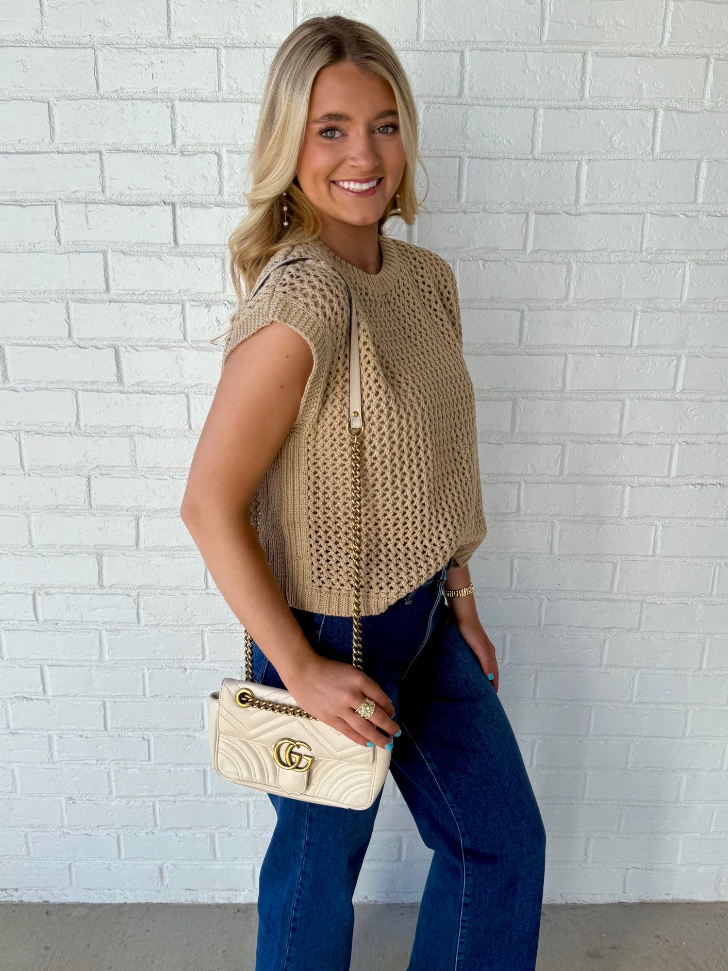 Increase quantity for Mocha Sleeveless Crochet Sweater