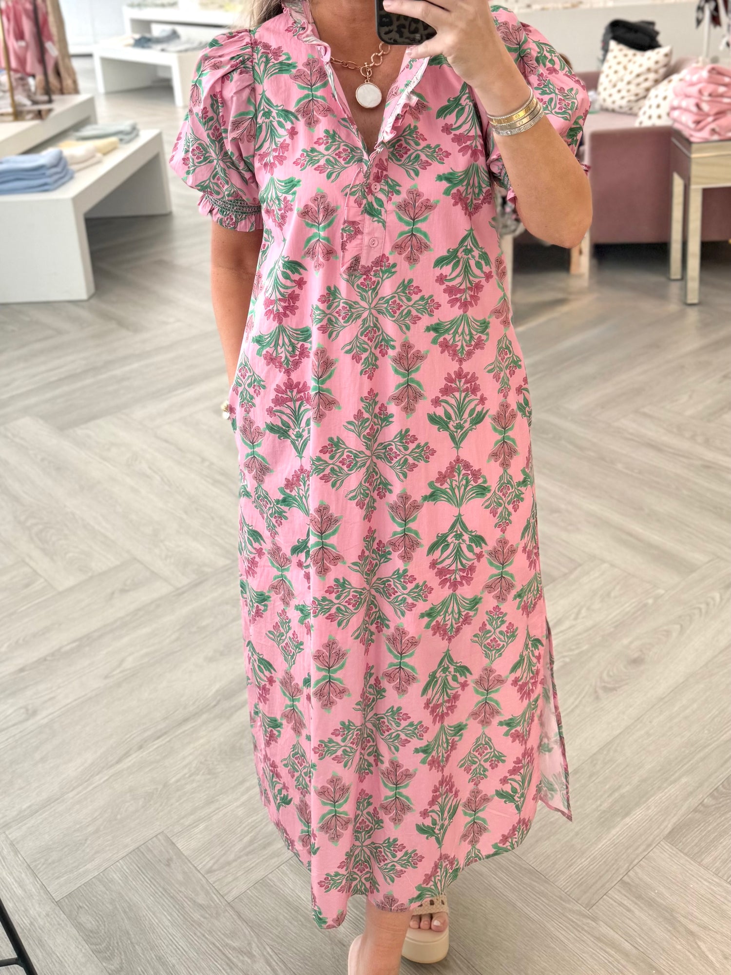 Decrease quantity for Pink Floral Reflection Button Maxi